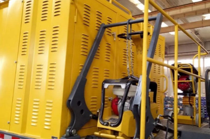 The front of the operator cab is equipped with a road roller suspension mechanism for easy loading and unloading of the road roller.